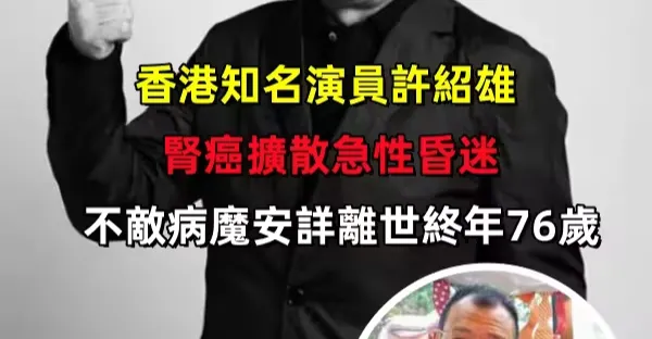 香港知名演員許紹雄腎癌擴散急性昏迷 不敵病魔安詳離世終年76歲