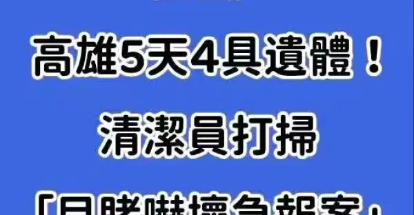 快訊/高雄5天4具遺體!清潔員打掃「目睹嚇壞急報案」!