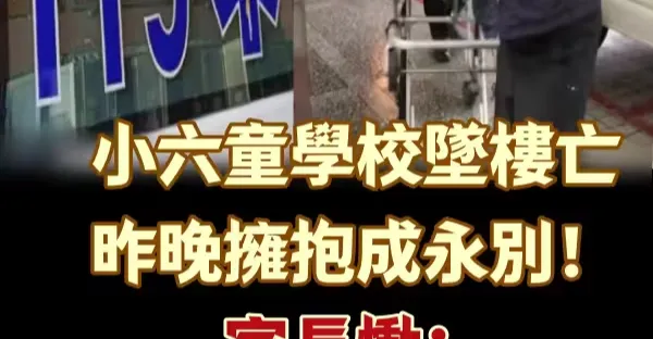 小六童學校墜樓亡,昨晚擁抱成永別! 家長慟:怎麼就沒了!