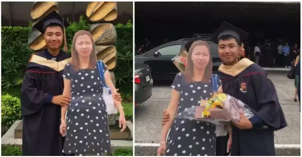 完成媽媽心願,單親媽媽「等不到兒子畢業走了」 他摟著紙板「拍下最感人畢業照」全家入鏡網淚崩
