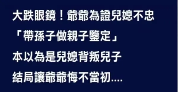 大跌眼鏡!爺爺為證兒媳不忠「帶孫子做親子鑒定」 本以為是兒媳背叛兒子 結局讓全家人都傻了