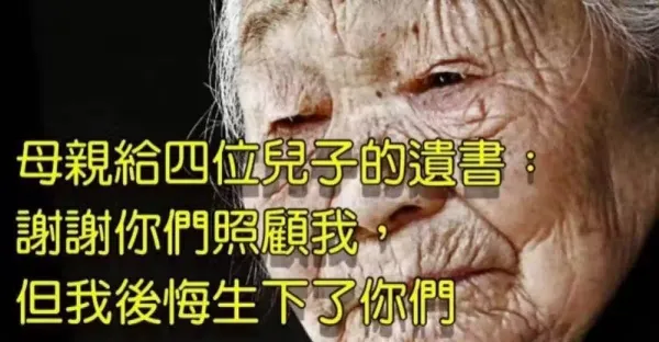 母親給四位兒子的遺書:謝謝你們照顧我,但我後悔生下了你們❗️